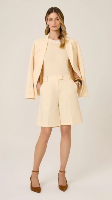 Alfaiataria estruturada com toque leve e acabamento impecável.