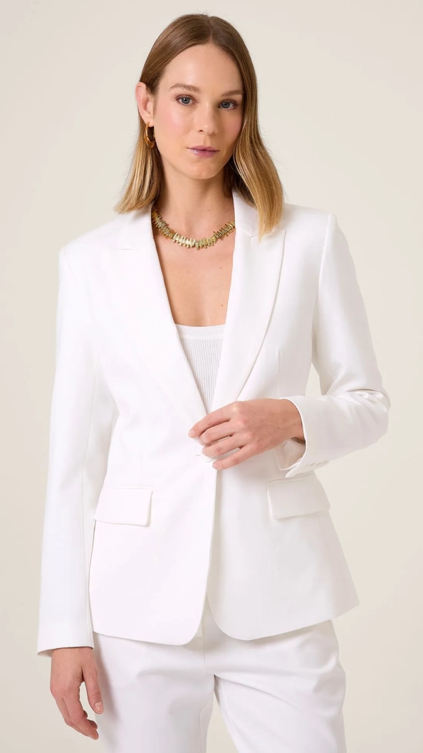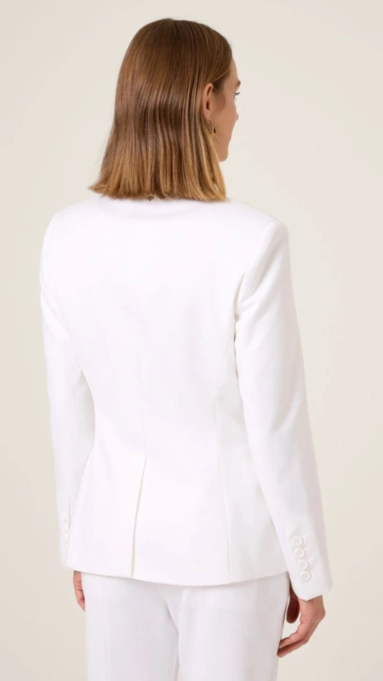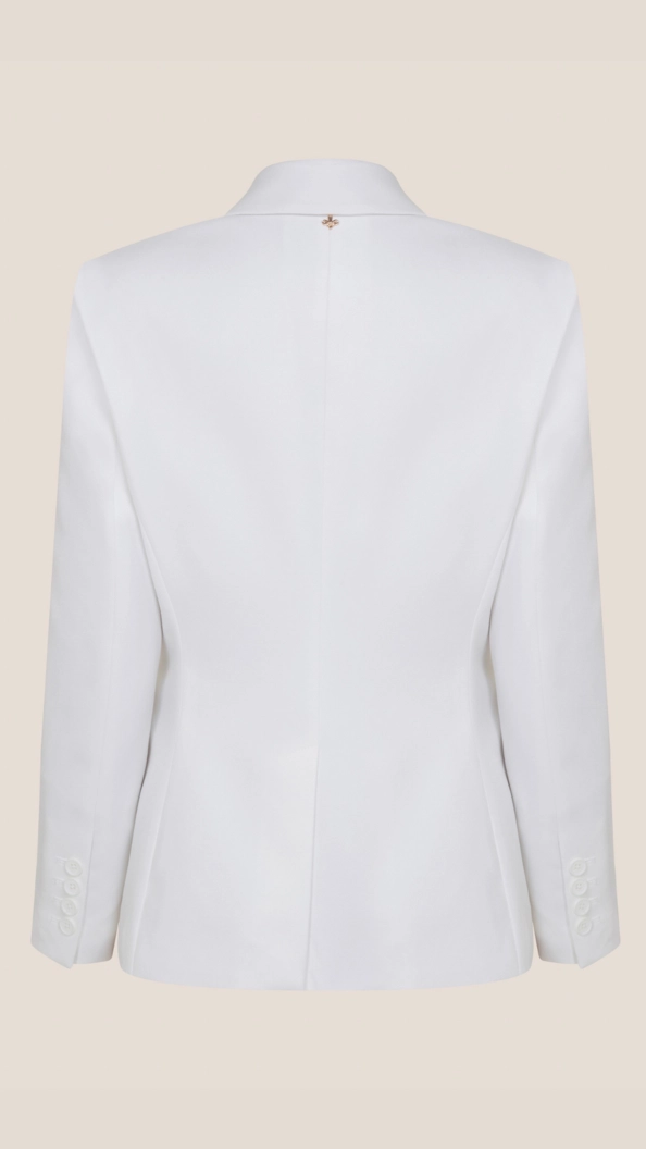 Blazer de alfaiataria com caimento impecável, modelagem acinturada e comprimento clássico. Gola e bolsos com lapela frontal, fechamento por botão único, trazendo estrutura ao look.