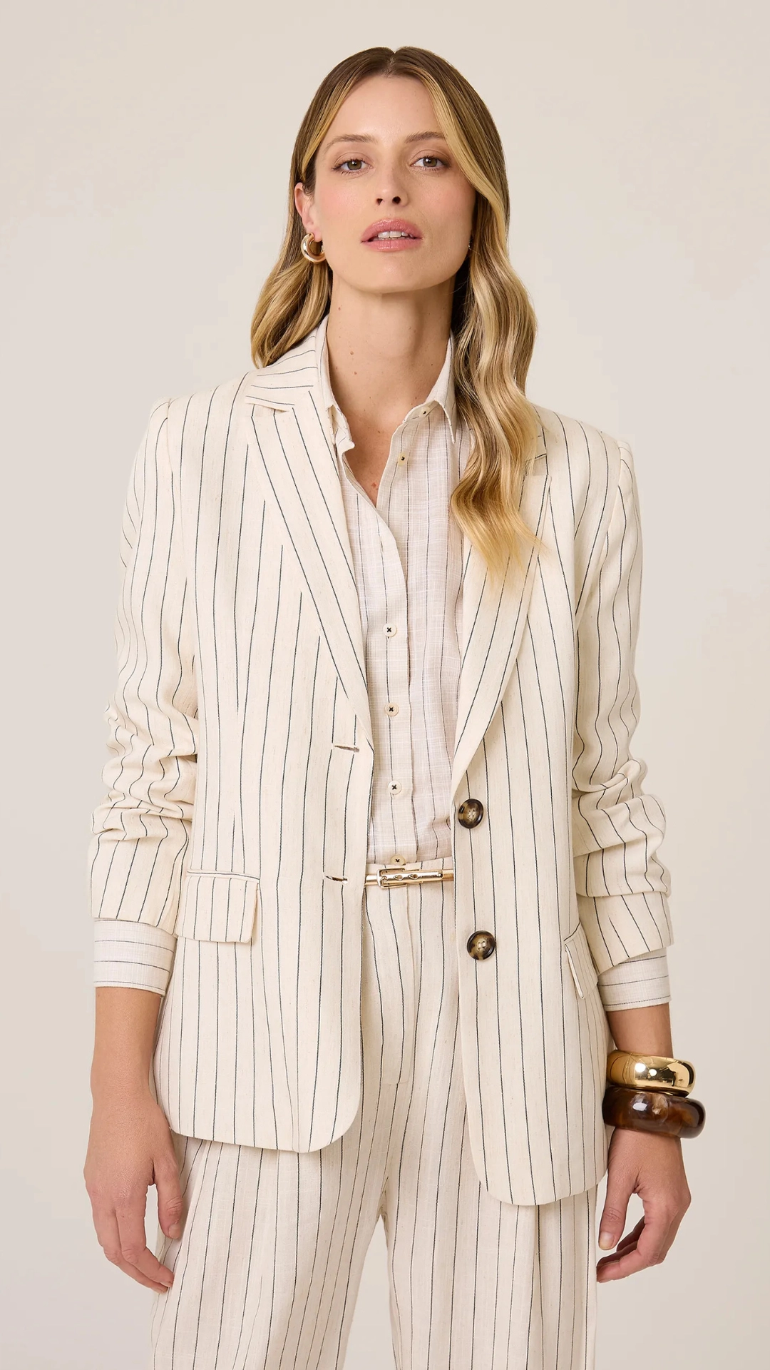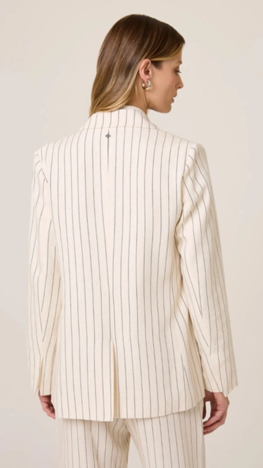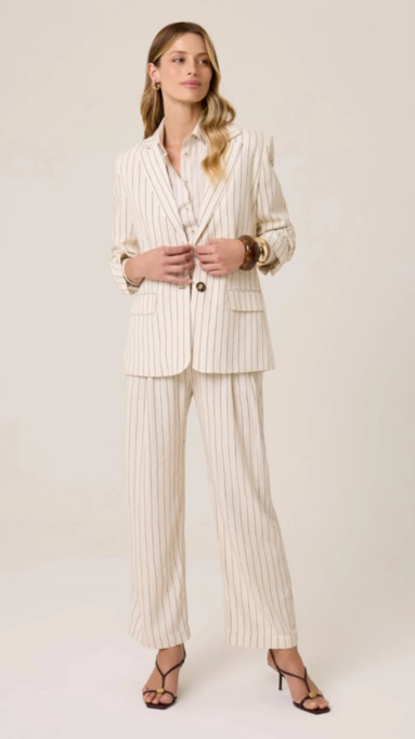 Combinando sofisticação e leveza, sua modelagem é levemente acinturada, com ombros estruturados e lapela clássica, garantindo caimento impecável.