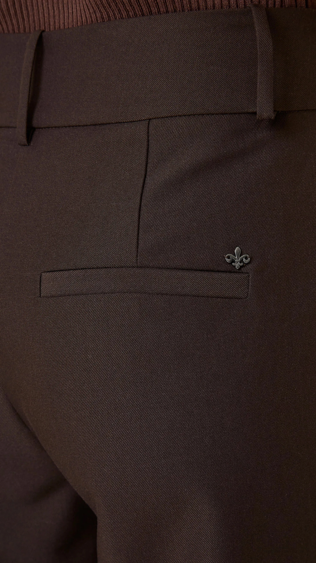 Modelagem slim, com barra italiana, alongando a silhueta e valorizando as pernas. Possui bolsos laterais funcionais e passantes, unindo elegância e praticidade.