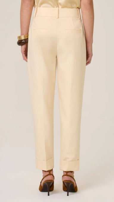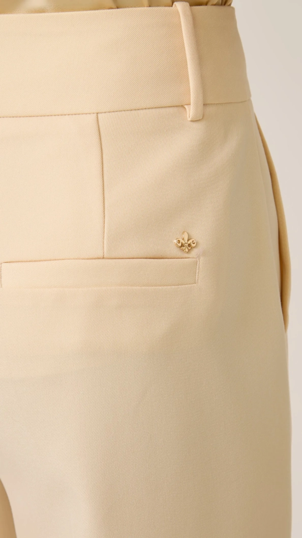 Modelagem slim, com barra italiana, alongando a silhueta e valorizando as pernas. Possui bolsos laterais funcionais e passantes, unindo elegância e praticidade.