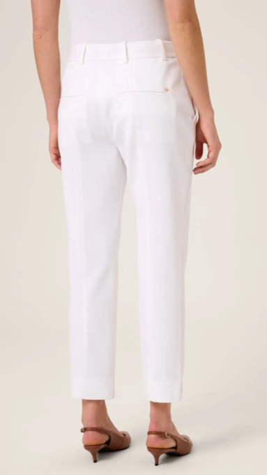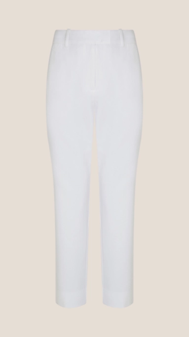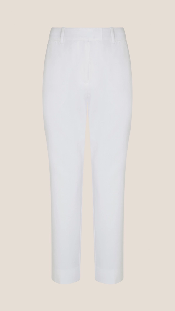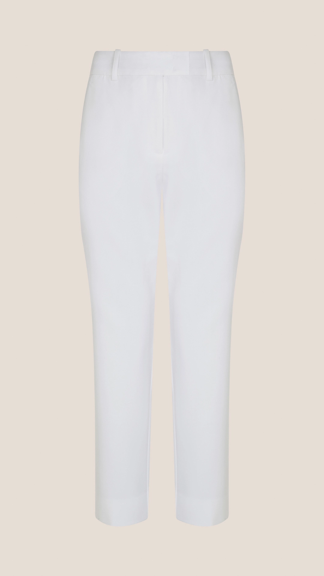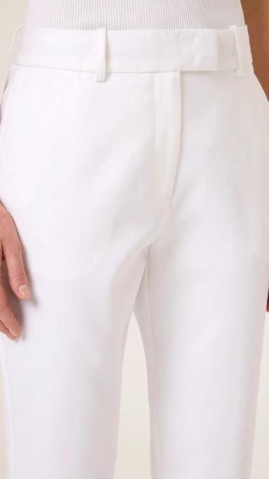 Calça alfaiataria com corte reto e cintura média, passantes para cinto, bolsos funcionais e fechamento frontal por zíper e colchete. Acabamento impecável e caimento elegante que valoriza a silhueta.