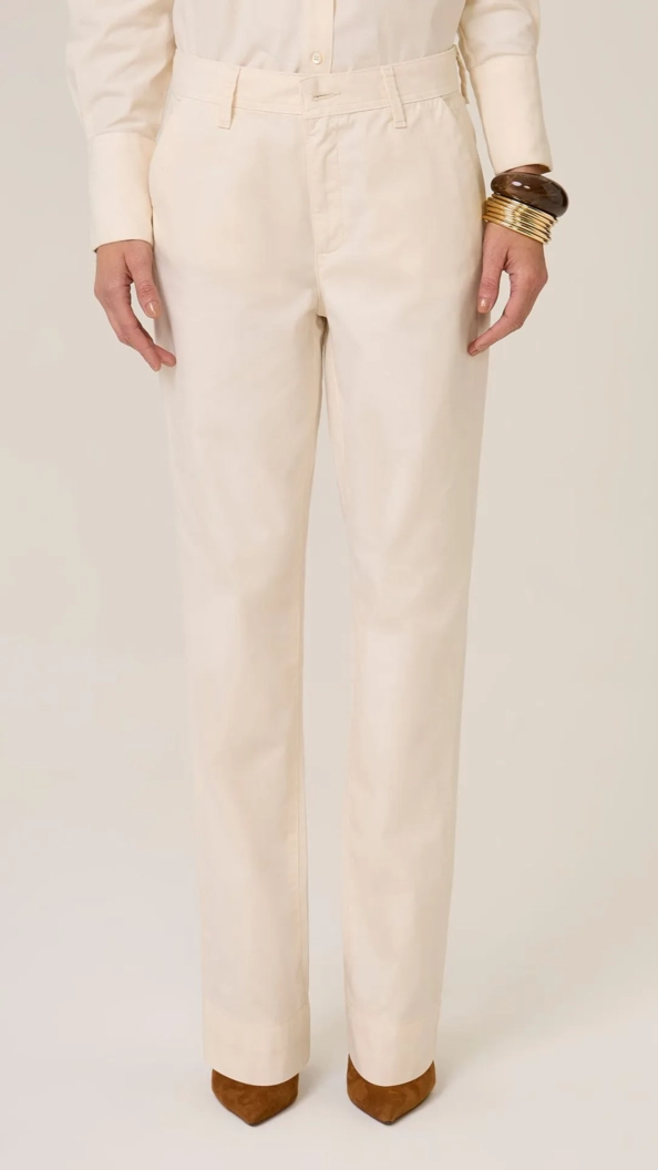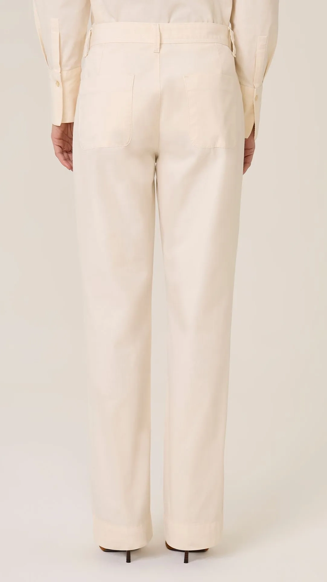 Modelagem reta e estruturada, cintura média e caimento impecável. Possui bolsos frontais e traseiros funcionais, passantes no cós e fechamento frontal por zíper e botão.