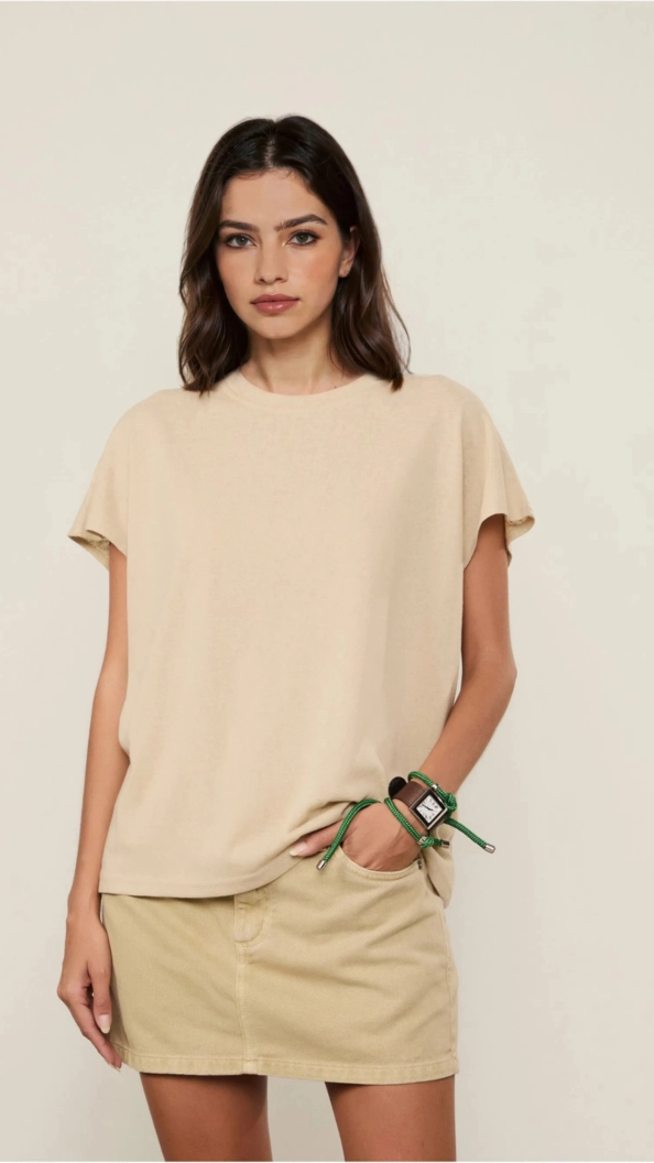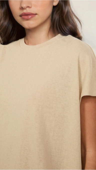 Malha macia com 65% algodão e 35% poliéster. Proporciona toque agradável, leveza e respirabilidade, sendo perfeita para o dia a dia e para sobreposições em diferentes estações.