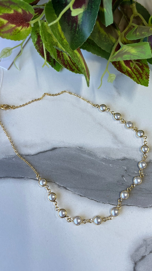 colar corrente dourado mini perolas