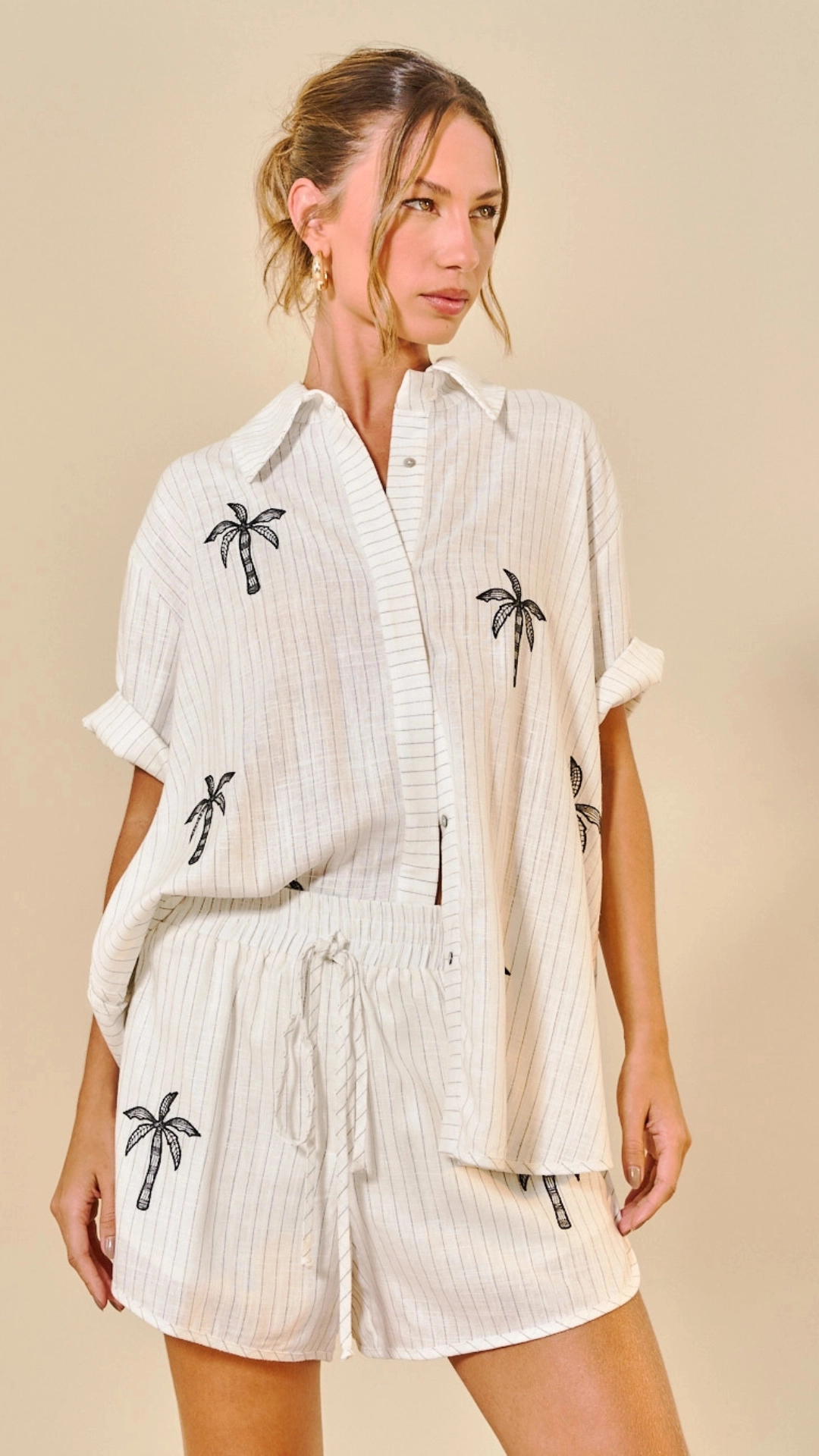 conjunto camisa e short linho listrado open