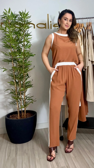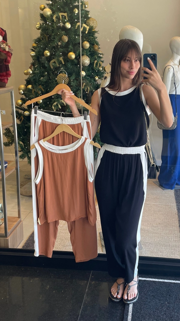 Design bicolor traz um ar elegante e moderno ao mesmo tempo. O tecido é leve, fluido e oferece ótimo caimento, ideal para quem busca estilo com conforto.