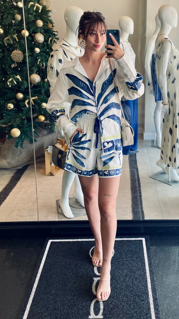 short linho estampado open