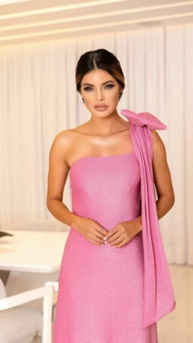 vestido longo lurex statement um ombro