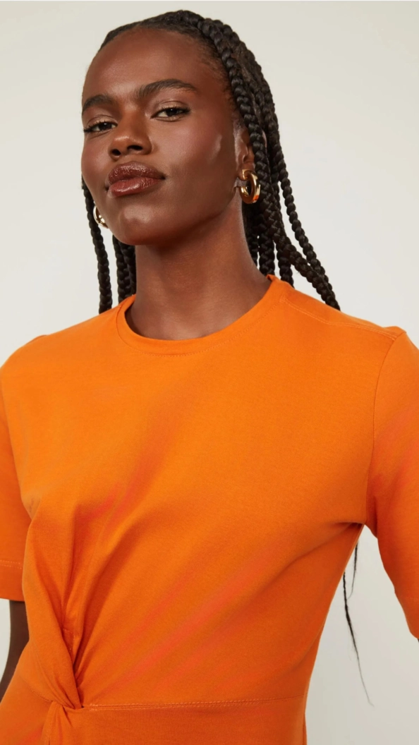 Corte que valoriza o corpo e entrelaço frontal na cintura, que cria um efeito drapeado super elegante e valoriza a silhueta.