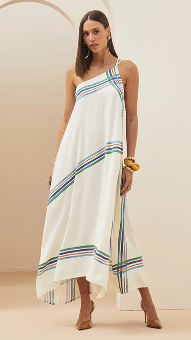 vestido midi forum visco um ombro art stripes